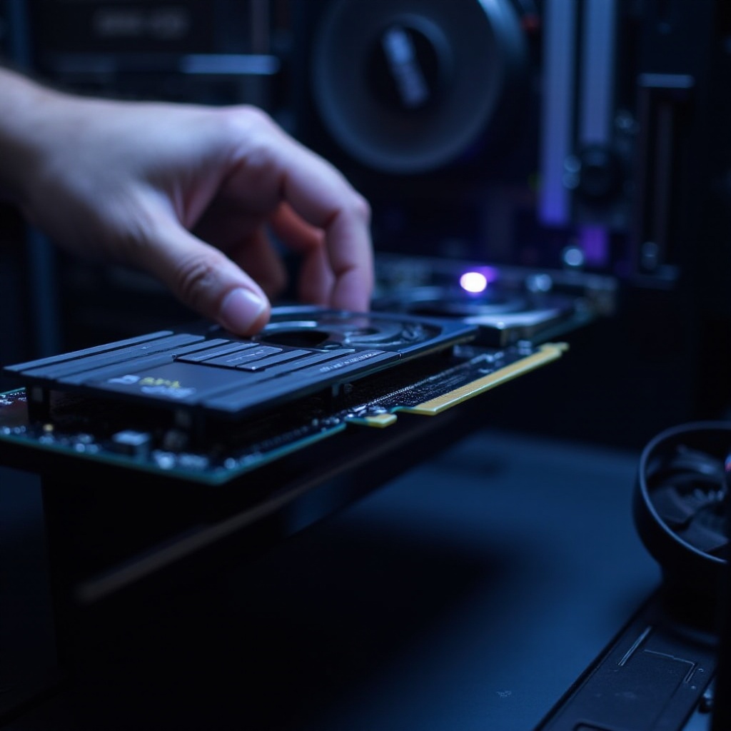 - التثبيت: أدخل بطاقة الرسوميات في فتحة PCIe وثبتها بالبراغي.