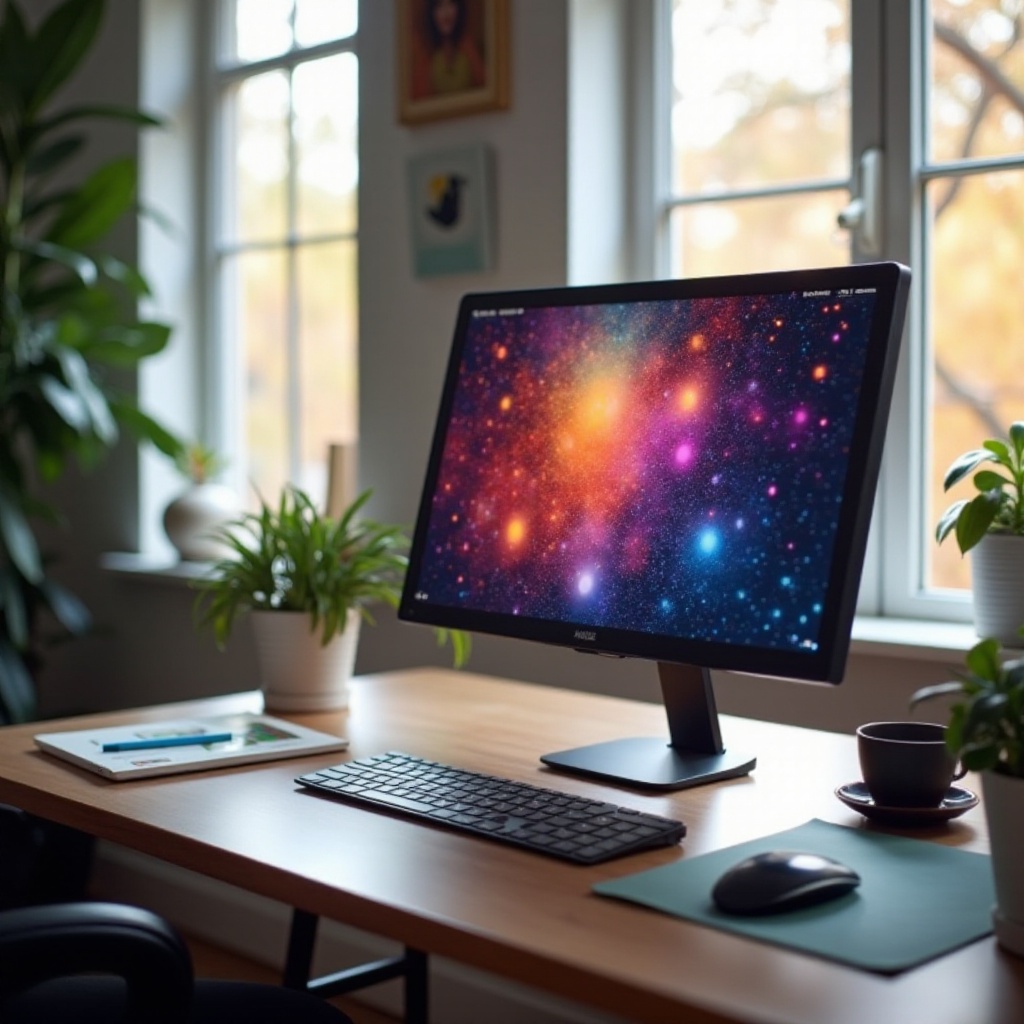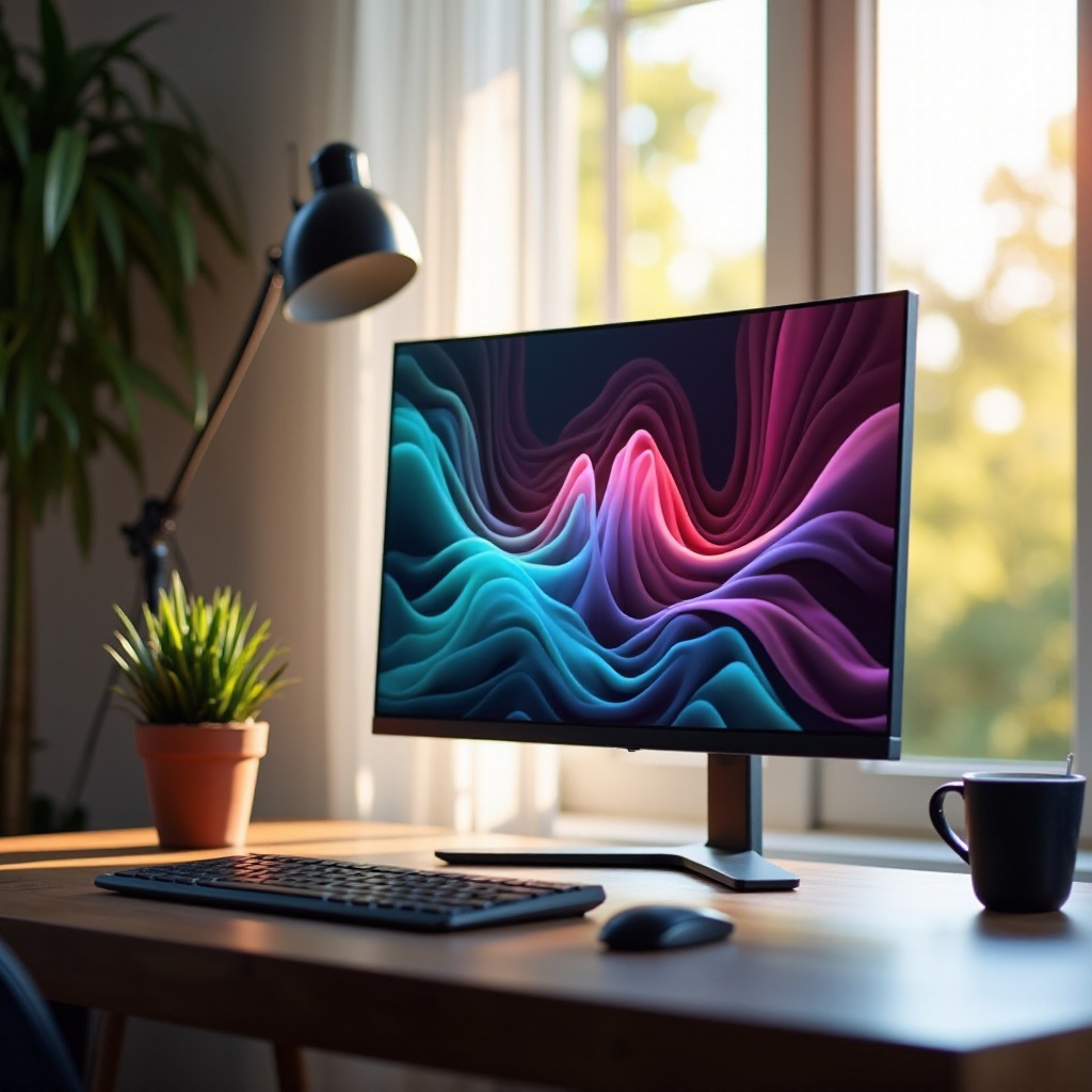 Resolusi Full HD (1920×1080) ideal untuk kejernihan dalam pekerjaan sehari-hari. Pastikan ukuran layar cocok dengan ruang meja Anda, dengan ukuran 24 hingga 27 inci yang disukai untuk multitasking.